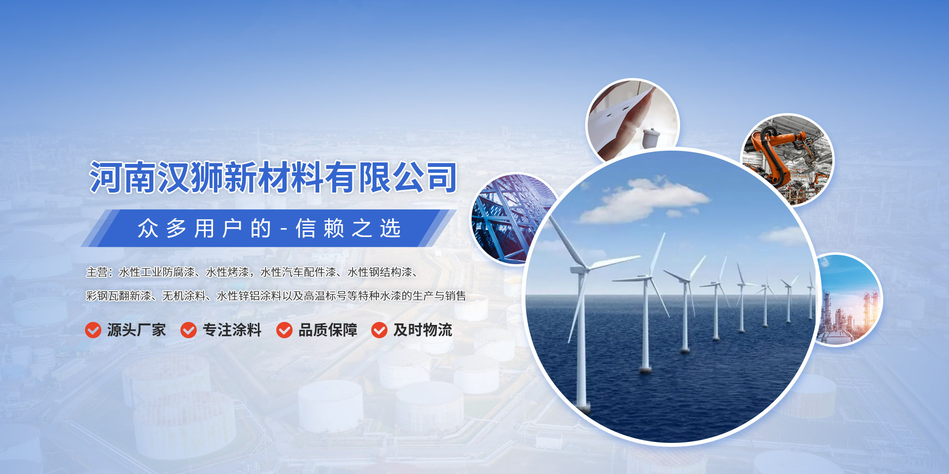 河南漢獅新材料有限公司是一家專注生產水性汽車配件烤漆,水性鋼桶烤漆,水性丙烯酸漆,水性彩鋼瓦翻新漆,水性醇酸、水性環氧、水性丙烯酸聚氨酯漆,水性無機富鋅底漆、水性高溫標號漆,水性金屬固銹劑,水性封閉劑以及功能性特種涂料的成長型企業。產品主要應用于汽車配件、工業設備、農業機械、鋼結構、鐵路配件、車輛船舶等工業及建筑領域的防腐與裝飾;提供一體化的整體涂裝方案。